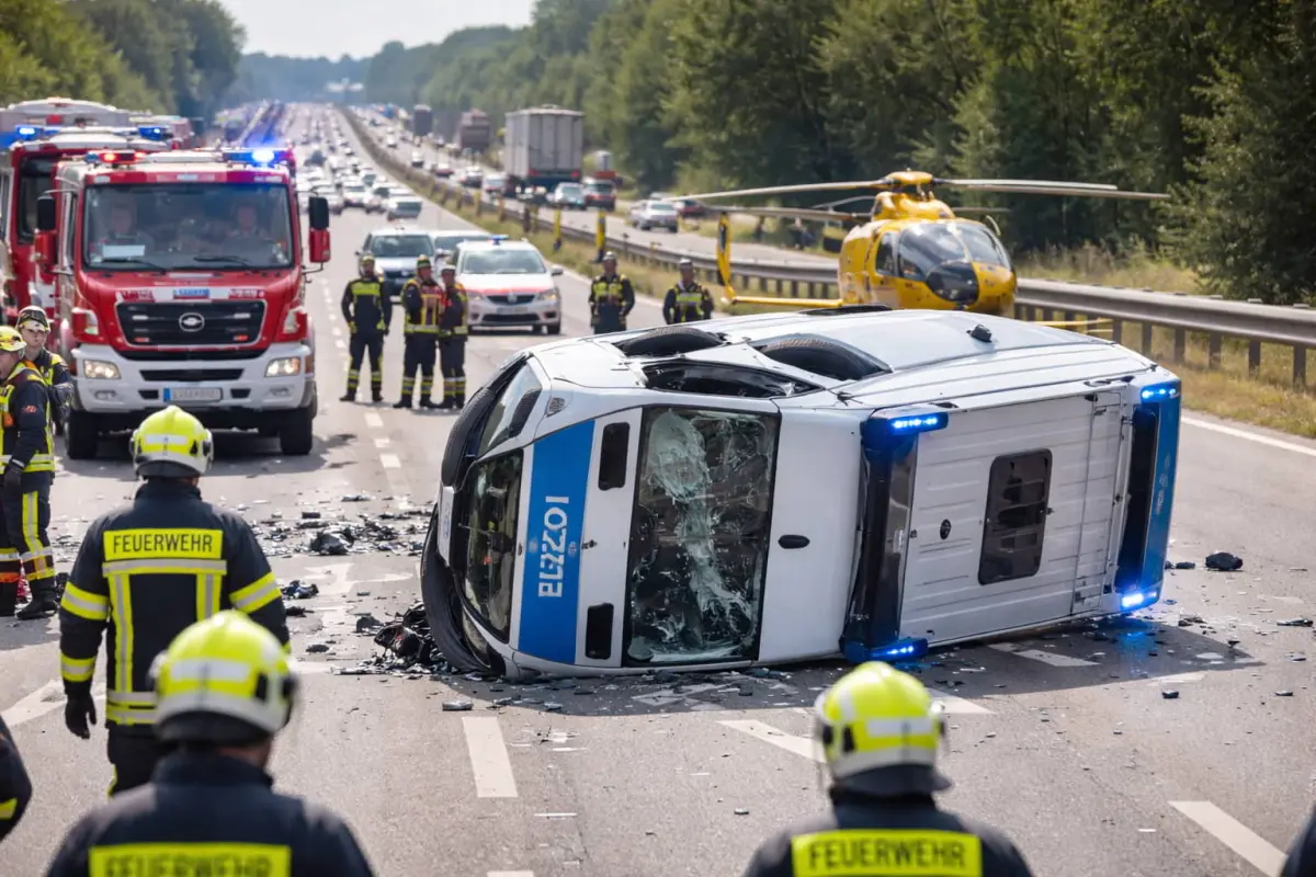 A2: Vier Polizisten nach Lkw-Unfall schwer verletzt