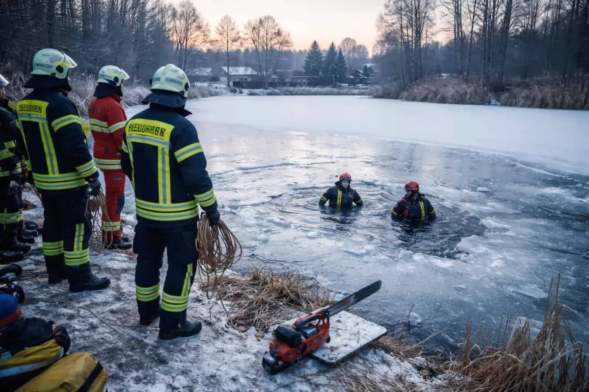 Um nach dem Mann zu suchen, sägten Einsatzkräfte mit Kettensägen weitere Öffnungen in die Eisdecke. Die niedrigen Temperaturen, das gefrorene Gewässer und die eingeschränkte Sicht erschwerten die Rettungsarbeiten erheblich. Trotz des schnellen Eingreifens kam für den 40-Jährigen jede Hilfe zu spät.
