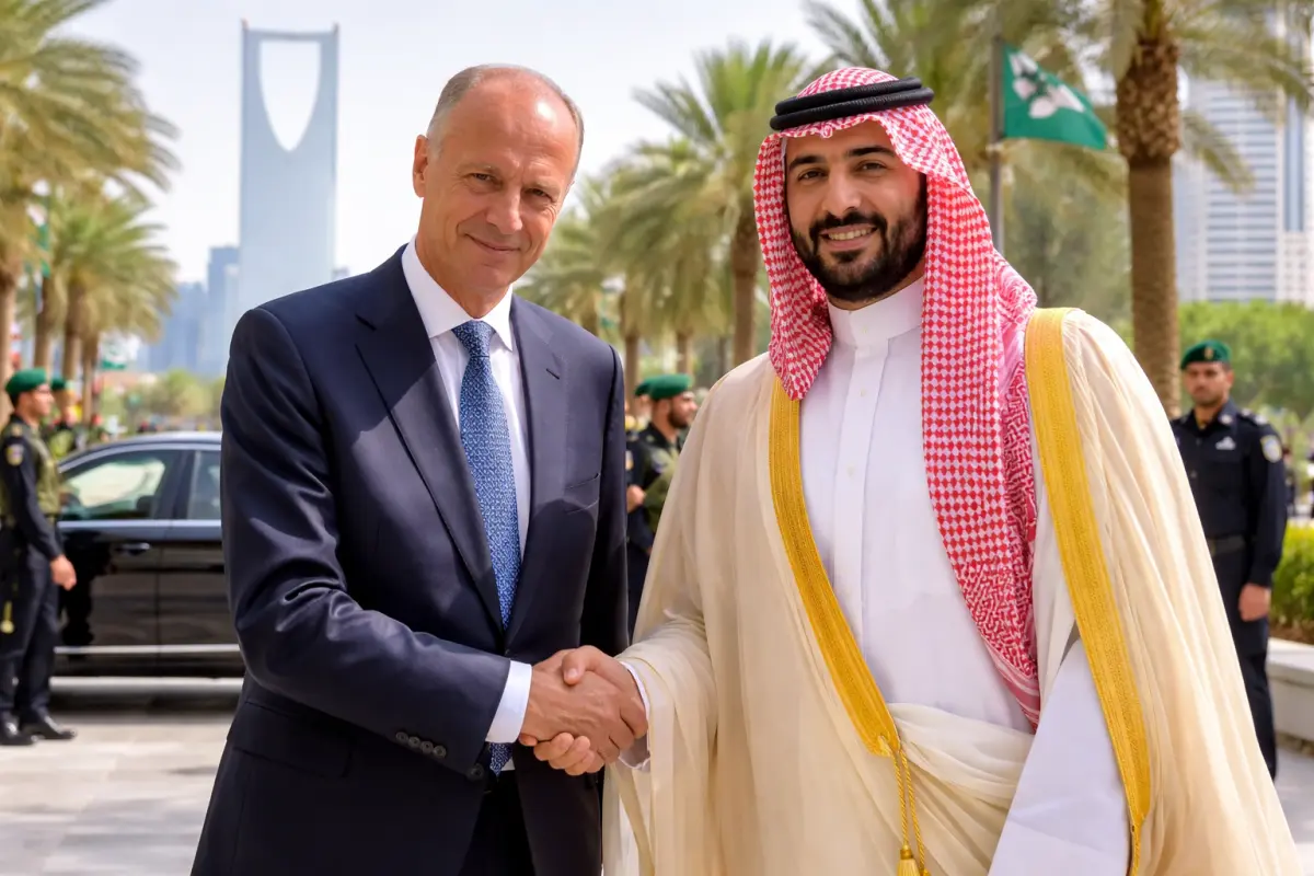 In Riad traf Merz unter vier Augen den saudischen Kronprinzen Mohammed bin Salman. Themen waren der Aufbau einer strategischen Partnerschaft, grüner Wasserstoff, Rüstungskooperationen, Künstliche Intelligenz sowie regionale Krisen in Syrien, Sudan und Iran. Öffentliche Auftritte blieben stark reglementiert; eine Pressekonferenz fand nicht statt.
