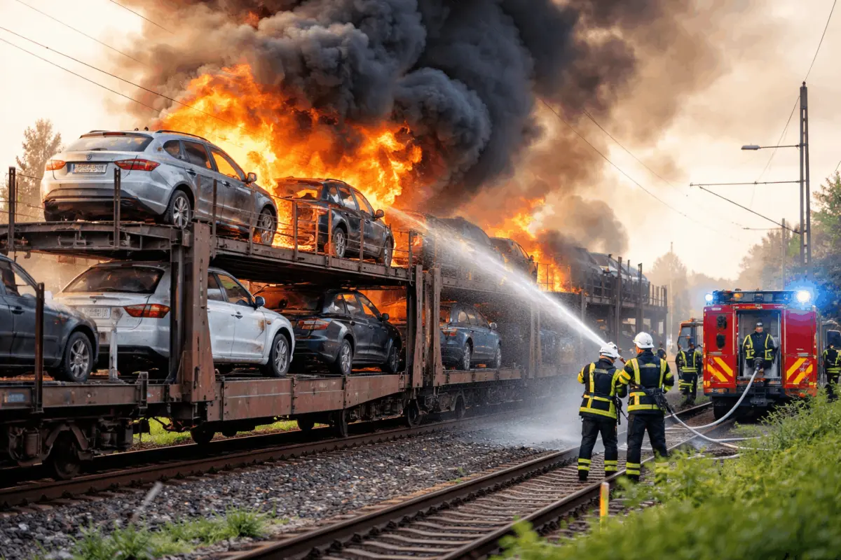 Am Montagabend gerieten mehrere Autos auf einem Güterzug im Magdeburger Stadtteil Sudenburg in Brand. Nach Angaben der Feuerwehr schlugen Flammen aus mehreren Waggons. Der Güterzug stand auf der Strecke zwischen Magdeburg und Braunschweig, einer wichtigen Ost-West-Verbindung im Schienennetz.